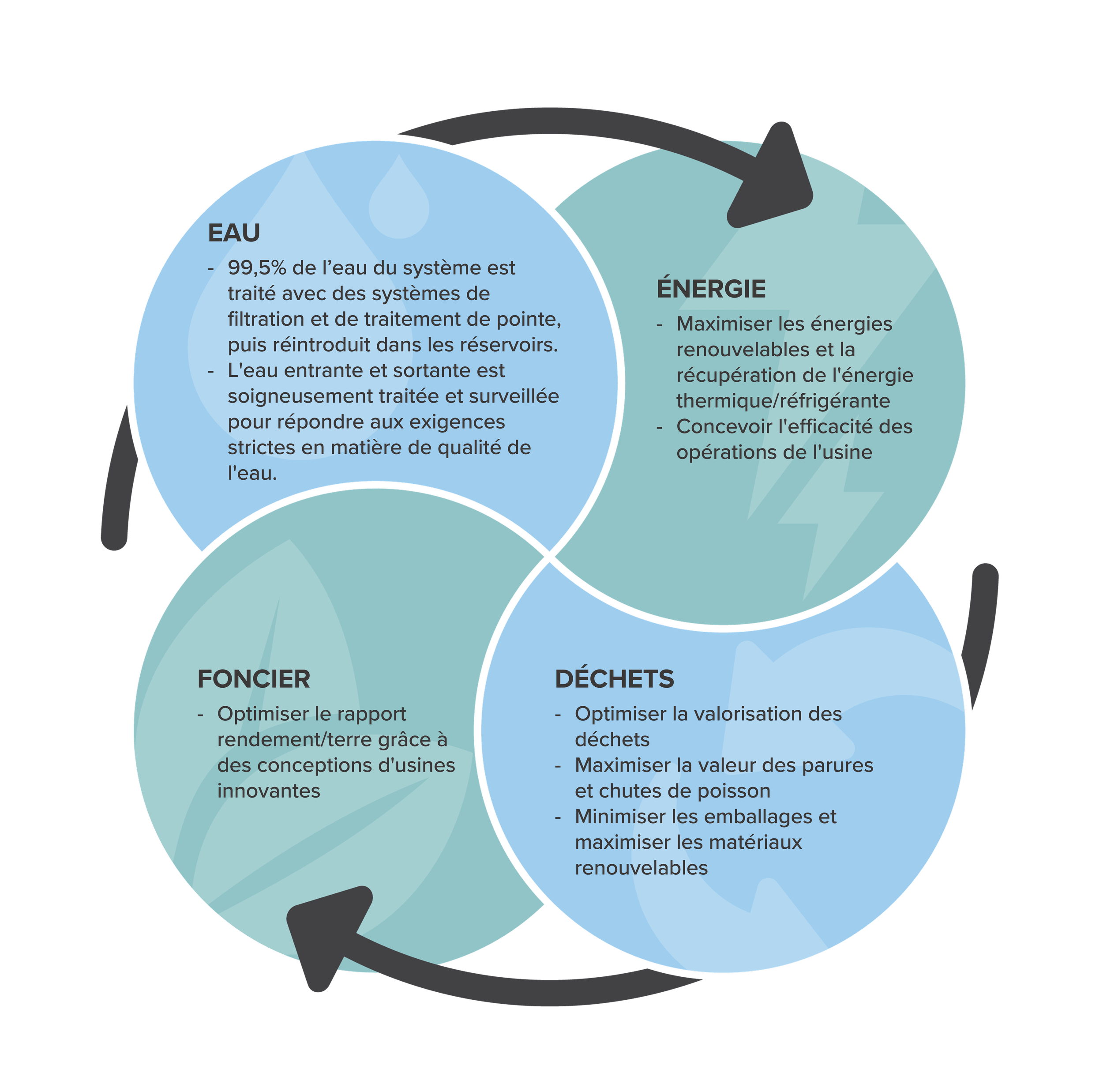 Full Circle™ est une innovation guidée par la réflexion et offrant une aquaculture de nouvelle génération en mettant l'accent sur la durabilité et la préservation des ressources.